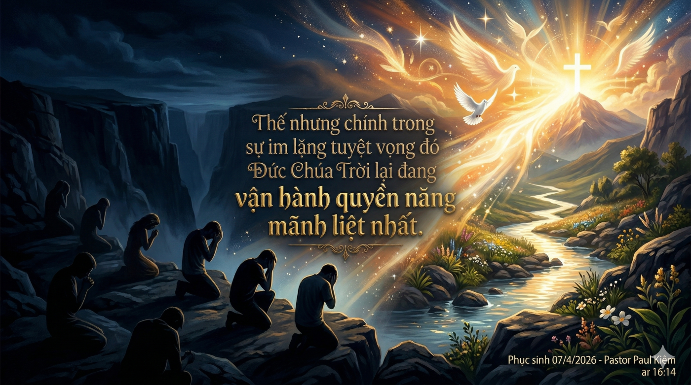 🌅 Hãy chiêm nghiệm điều này: Ngôi mộ đá táng xác Chúa từng chìm trong hai đêm tĩnh lặng u minh, khi nhãn quan trần thế chỉ còn thấy sự khép lại của một sinh thể bị bức tử và chôn vùi. Đó là tận cùng của sự tuyệt vọng nơi lý trí con người. Thế nhưng, chính trong sự tĩnh mịch bao trùm ấy, Đức Chúa Trời lại đang vận hành quyền năng mãnh liệt nhất cho công cuộc sáng tạo mới: một bầu trời mới, một trái đất mới, và tạo sinh một con người mới, một thế giới mới được cai trị trọn vẹn bởi tình yêu thương!