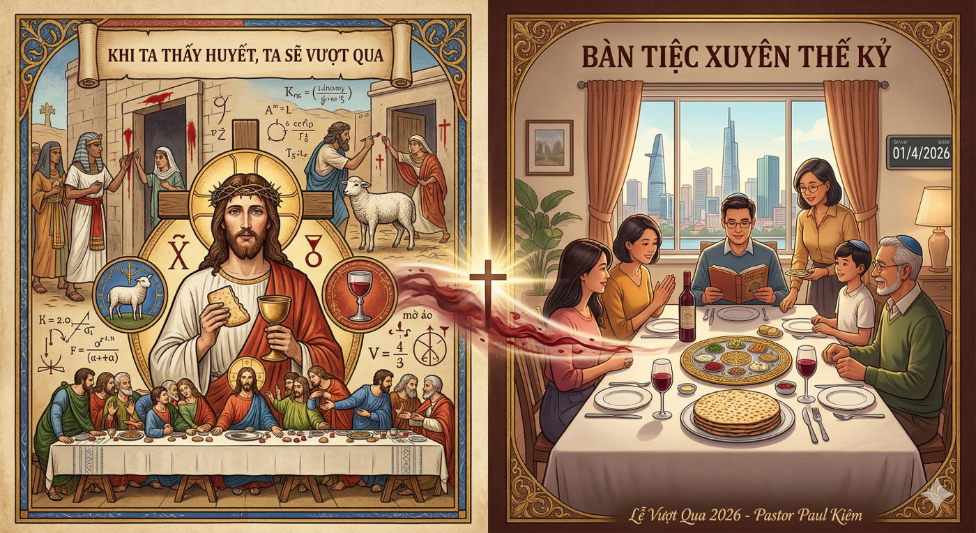 Rất nhiều tín hữu Tin Lành hôm nay dự Tiệc Thánh nhưng lại đánh mất chiều sâu gốc rễ của Lễ Vượt Qua (Passover). Chúng ta thường nhìn Bánh và Chén như một biểu tượng tưởng niệm tĩnh lặng, mà quên mất rằng đó là sự tiếp nối của một đêm chấn động lịch sử—đêm mà tiếng khóc than của cõi chết đụng độ với quyền năng giải cứu của Huyết. Để chạm đến sự minh triết của Thần học Thập tự giá, chúng ta phải kiến tạo một giao điểm: Nhìn lại đêm đen tại Ai Cập (XƯA), thấu hiểu bàn tiệc Seder của người Do Thái, vỡ òa trước sự tự hiến của Chúa Jesus tại phòng cao, để rồi đối diện với chính thực tại linh hồn mình trong ngày hôm nay, 01/4/2026 (NAY).