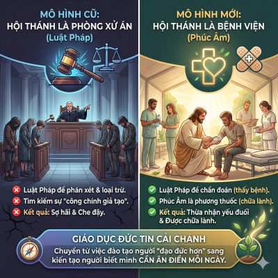 Các bản văn Kinh Thánh gợi mở một sự chuyển đổi mô hình giáo dục đức tin mang tính cách mạng: từ phòng xử án sang bệnh viện.