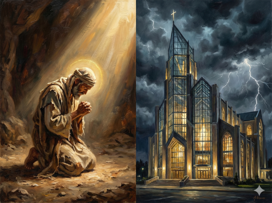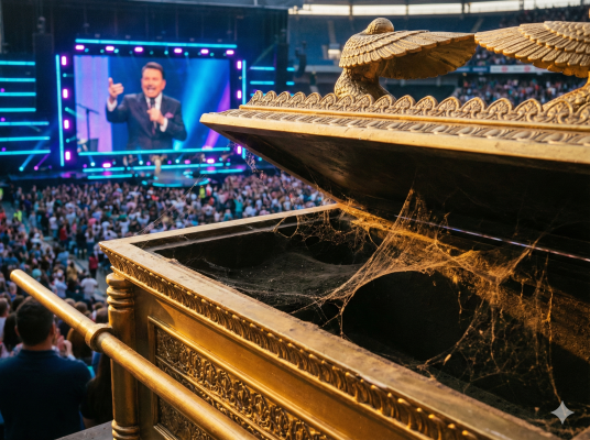 Những yếu tố này, tuy không sai về mặt bản chất, nhưng dễ dàng trở thành những “Hòm Giao Ước mới”. Chúng tạo ra một lớp vỏ bọc thiêng liêng (sacred veneer) che đậy sự rỗng tuếch bên trong. Chúng ta có nguy cơ tôn thờ “Khái niệm về Chúa” được dàn dựng trên sân khấu hơn là chính Thực tại của Chúa.